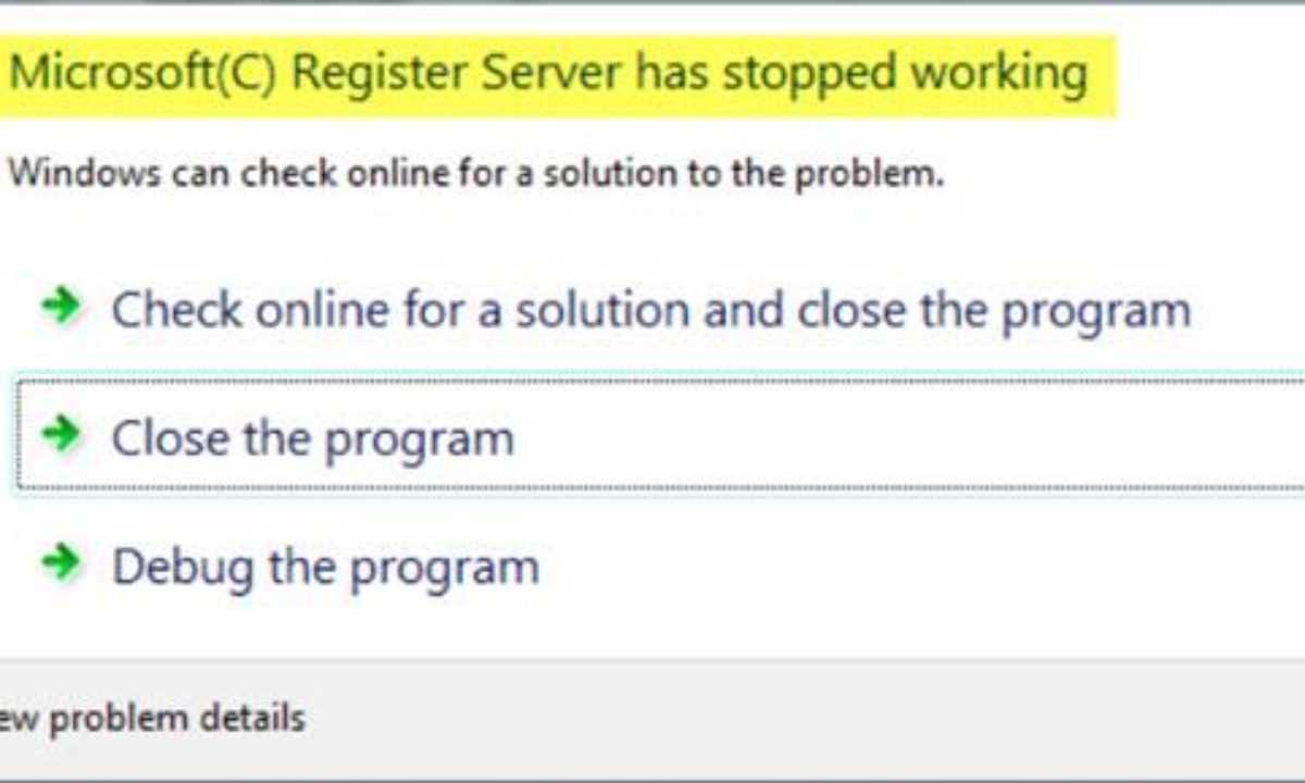 Microsoft Register Server Has Stopped Working On Windows 10 8 7